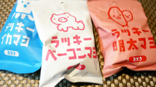 おつまみおやつの定番の柿の種をはじめ、<いぶりがっこおかき>や<ネギバカせんべい>などの変わり種など、個性的な米菓を製造販売されている三真さんの大ヒット人気商品、ラッキーシリーズ。『どっ…ぷりマヨに漬けました』の通り、しっかりマヨ風味にそれぞれのフレーバーが合わさった、マヨファンにはたまらないおかき。
