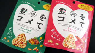 湖池屋の新商品<愛をコメて>は、北海道のお米を使った米パフにごろっと具材をトッピング、ザクッホロッと食感の新感覚おにぎりスナック。ノンフライで軽く、ぎゅっと旨味が凝縮された味わいはクセになる!