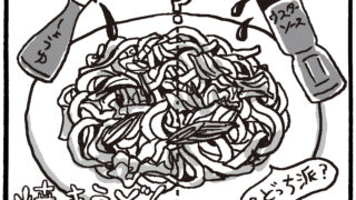 画 【1コマ日記】焼うどんは醤油かソースか。
