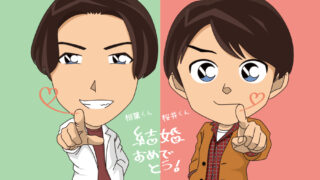 嵐の相葉雅紀くん、櫻井翔くん、二人同時に結婚発表!おめでとう!驚きよりも喜ばしさが強く、姉のような気持ちで受け止めた。お二人ともどうか末長くお幸せに!相葉くんと櫻井くんコナン風で描いてみた。