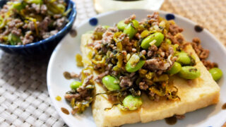 肴 【呑みつま】作り置きOK!ひき肉と高菜と枝豆そぼろ〜おつまみにご飯のお供に