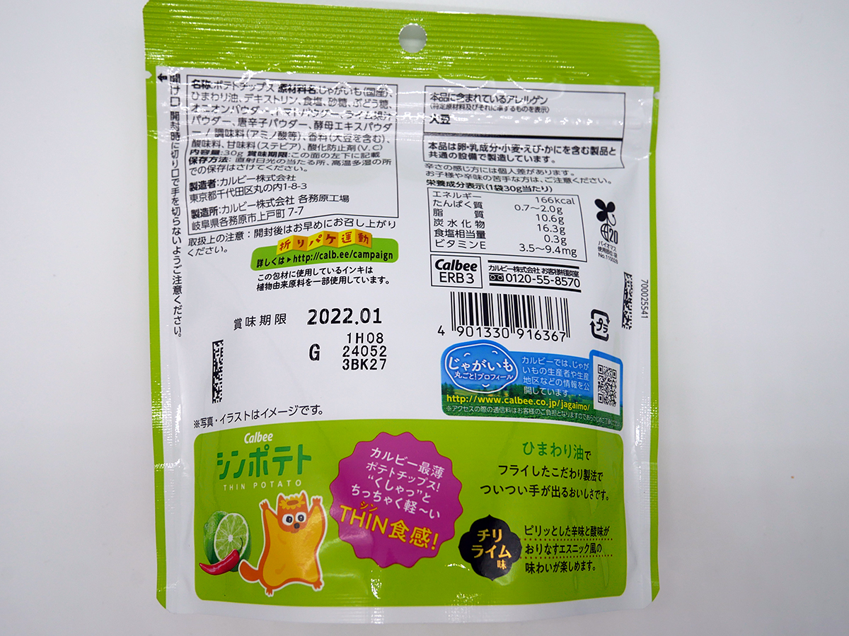 ピリ辛と爽やかライムが夏にぴったり!シンポテト<チリライム味>@カルビー