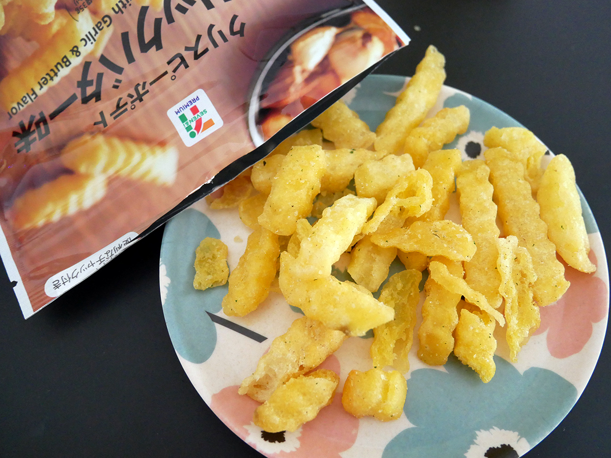 スナック菓子 おやつまみ:ハードな食感と濃厚な味がビールにピッタリ!クリスピーポテト<ガーリックバター味>@セブンイレブン