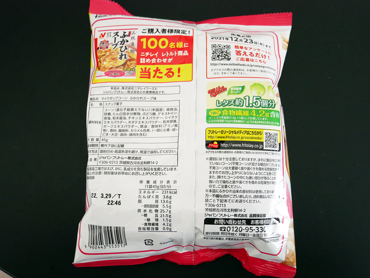 ニチレイと再びコラボの新作はいかに!マイク・ポップコーン<ふかひれスープ味>@ジャパンフリトレー