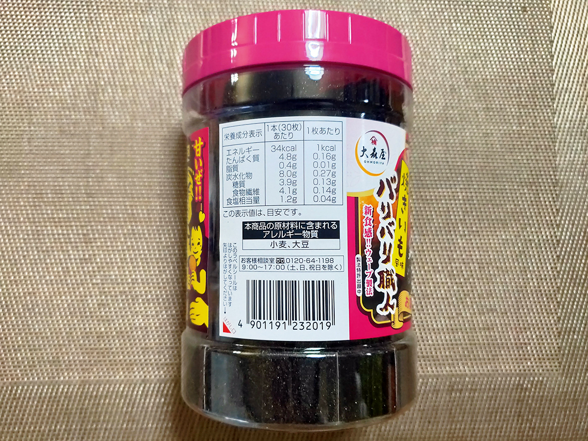 流行りのさつまいもが海苔に!?バリバリ職人<焼きいも風味>@大森屋