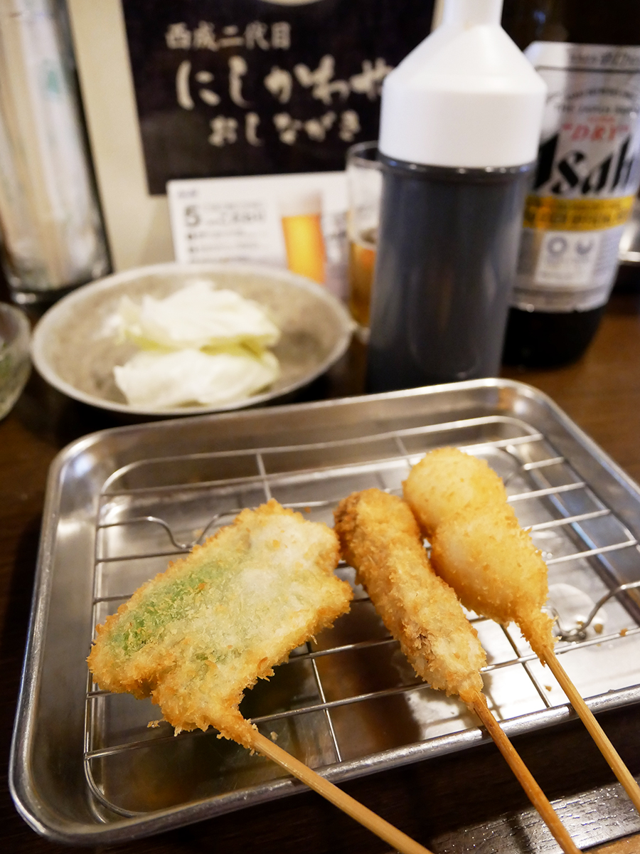 朝酒OK!昭和レトロも心地よい串かつ酒場。「西成二代目にしかわや」@大阪梅田