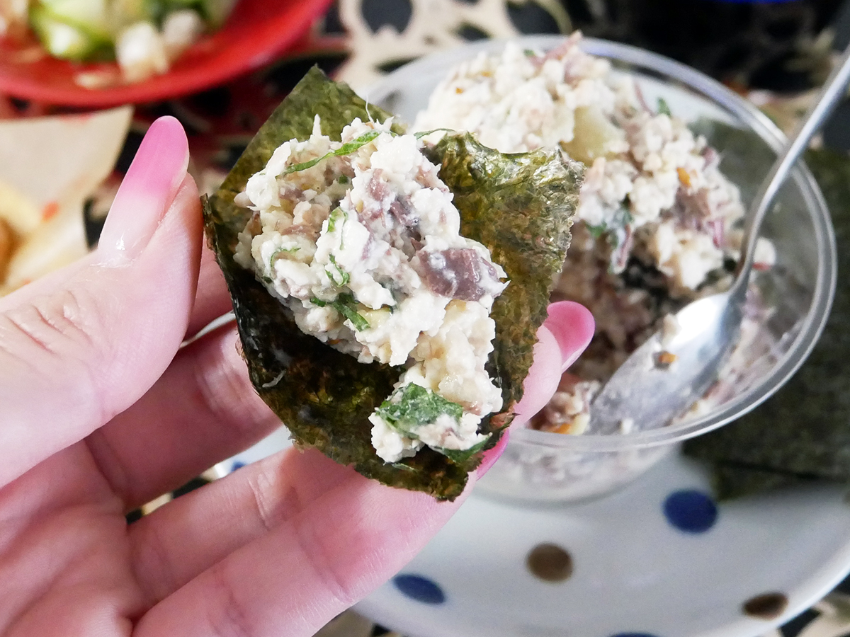 肴 【呑みつま】やすまるだしで!きゅうりのクリームチーズ豆腐白和え