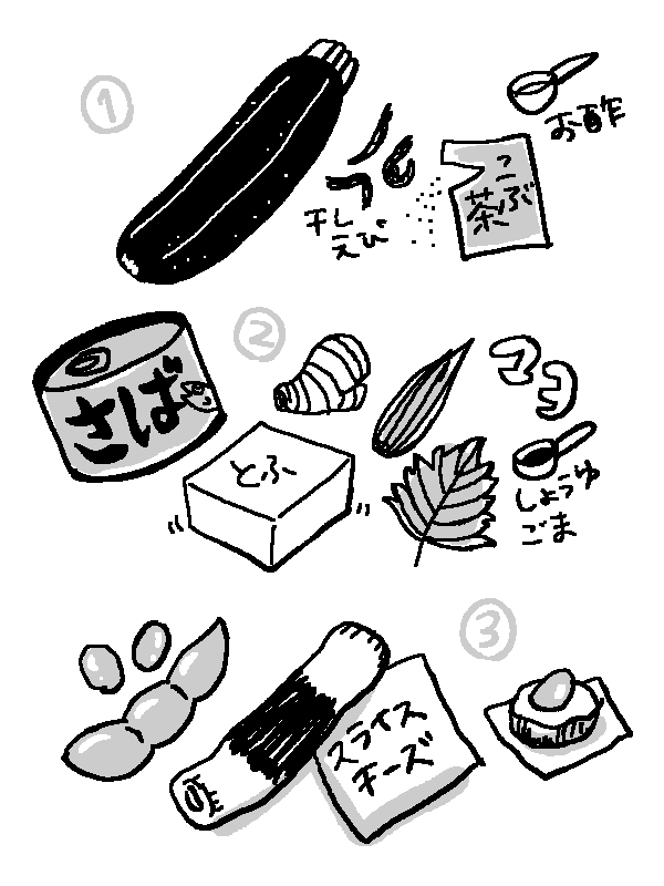 【呑みつま】15分でおつまみ3品〜鯖缶、ちくわ、ズッキーニ