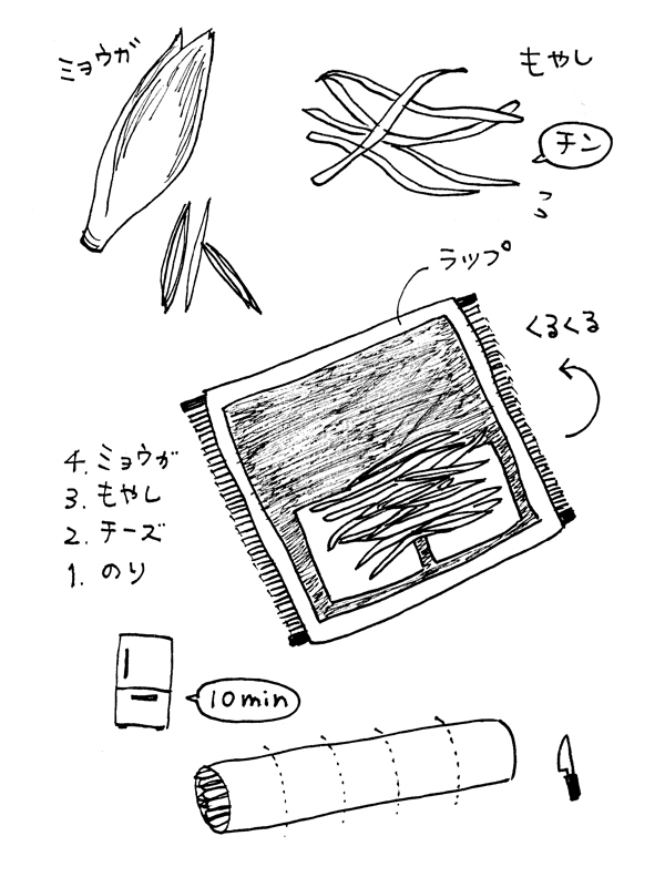 【呑みつま】ミョウガを食べる!ミョウガともやしの海苔巻き