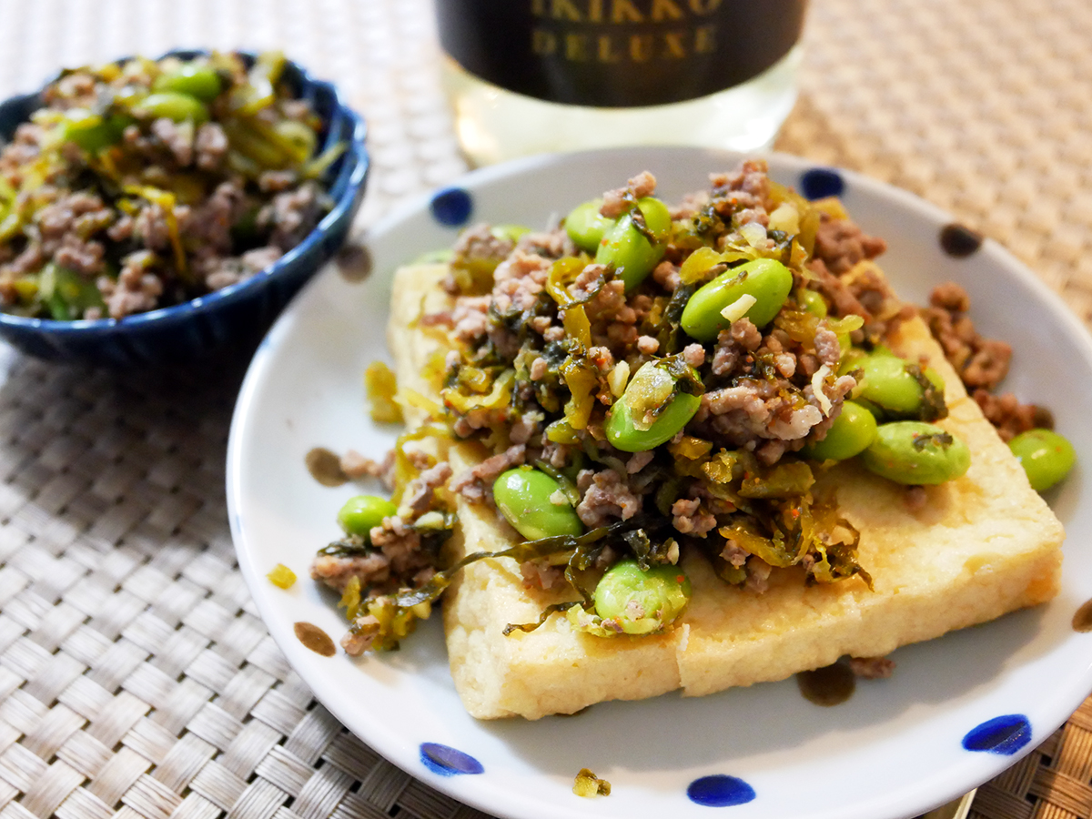 【呑みつま】作り置きOK!ひき肉と高菜と枝豆そぼろ〜おつまみにご飯のお供に