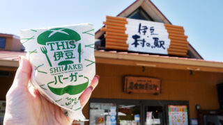 伊豆半島の入り口、静岡県三島市の国道136号線沿いにある「伊豆・村の駅」は、豊富に揃う伊豆や静岡の特産品にグルメが人気の食のテーマパーク。伊豆と言えばの干物やまぐろやシラスなどの海産物、酒の肴に缶詰、スイーツやお茶などとにかく豊富に揃い目移り必至。地元のしいたけを使ったTHIS伊豆しいたけバーガーはココでしか食べられない必食の逸品です!