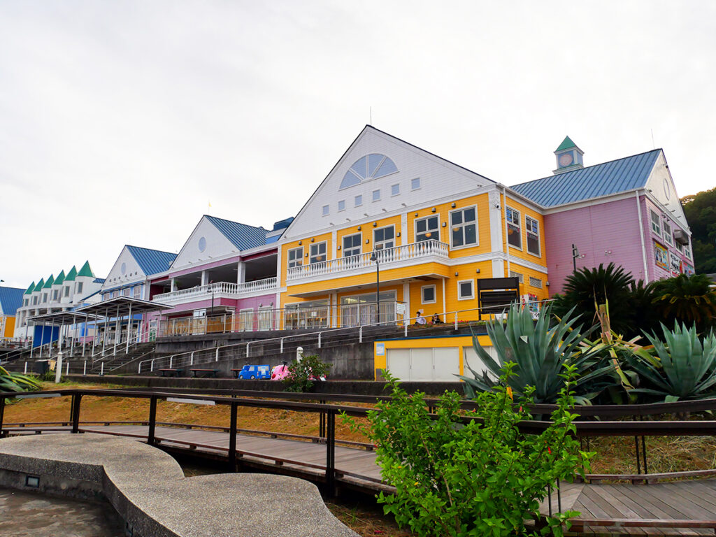 カラフルな外観がとってもキュートな国道135号沿いに面する「道の駅 伊東マリンタウン」は、各種お土産処やレストラン、日帰り温泉や足湯などが楽しめる複合施設。友達同士、カップル、ファミリー、ペット連れまでウェルカム!